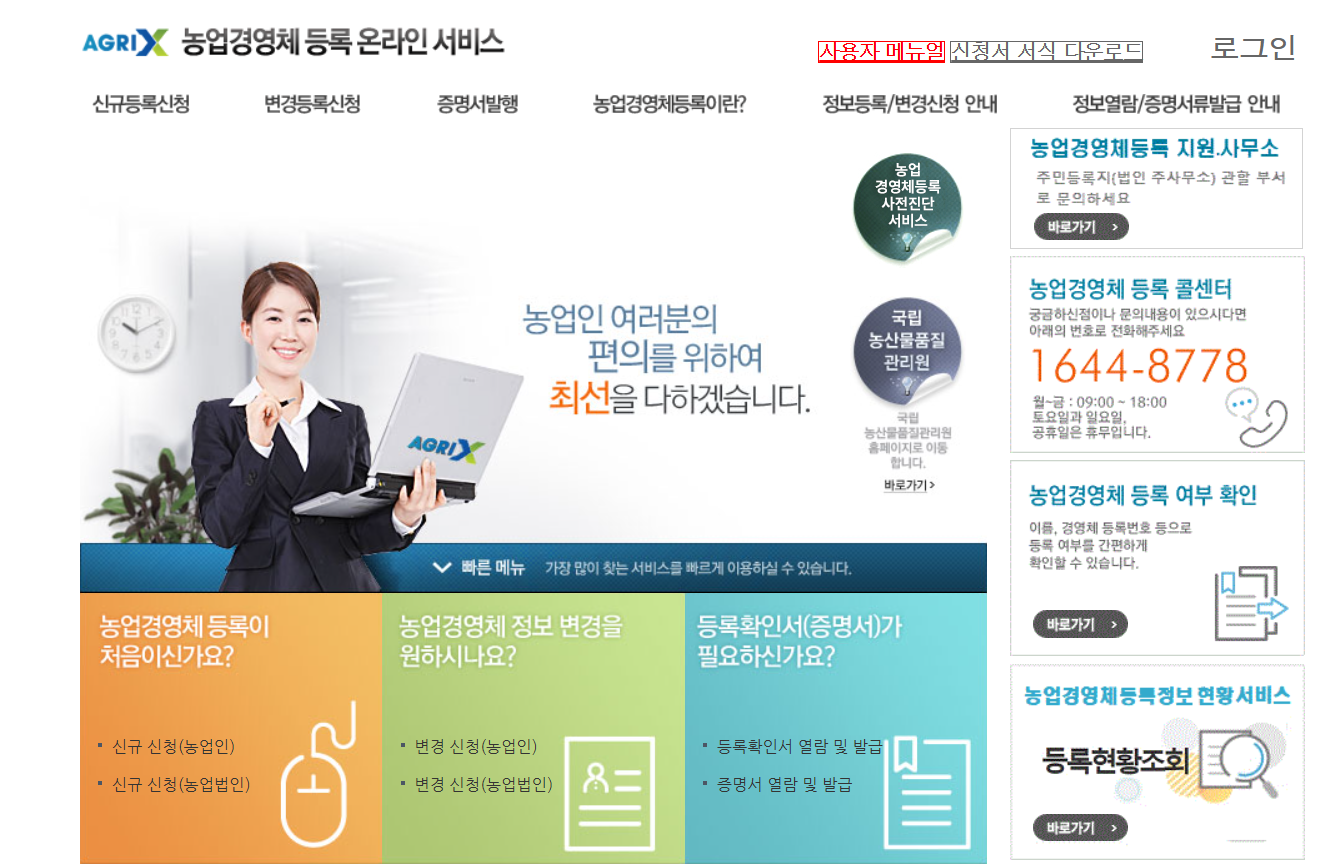 - ②온라인 신청: 농업경영체 통합정보시스템에서 등록 가능